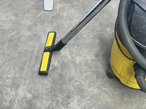 Wyposażony w obrotowe kółka; odkurzacz mokry i suchy; dysza podłogowa; wąż i rurka."