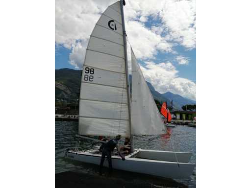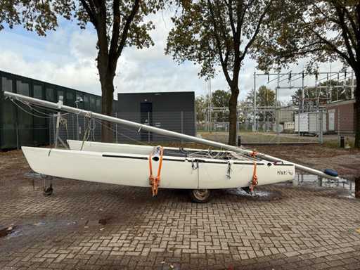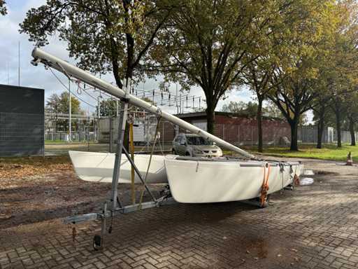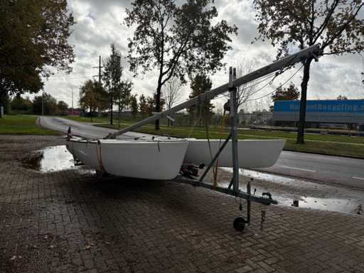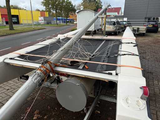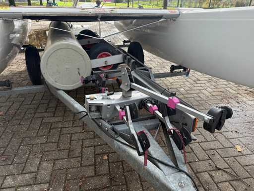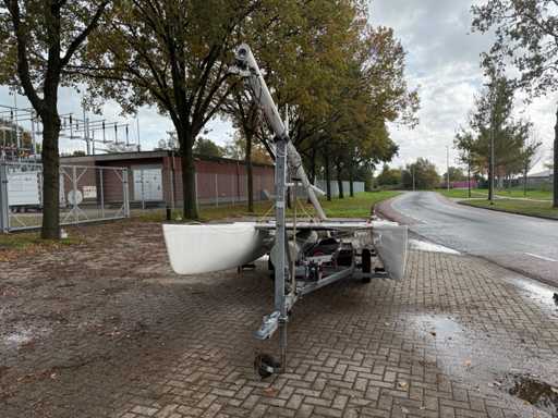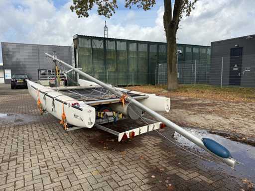 Katamaran żaglowy; V.V. : przyczepa jednoosiowa z systemem ro-roll-off; Koło pasowe;