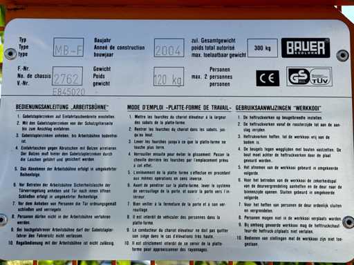 Dopuszczalna waga całkowita: 300 kg, dla maksymalnie 2 osób, więcej szczegółów na zdjęciach tabliczki znamionowej