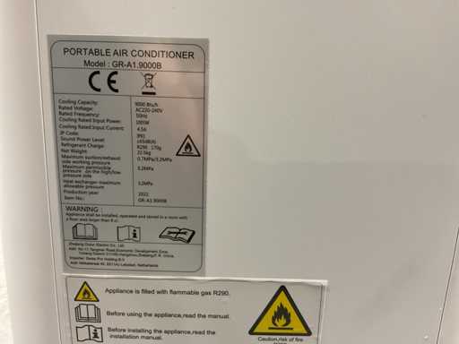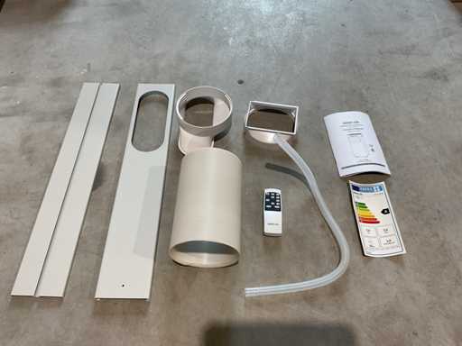 Wyposażony w mobilną klimatyzację; Nadaje się do powierzchni do 35 m²; Wydajność chłodnicza btu 9000; Zużycie energii poziom A; Moc 1005 W; Długość przewodu 2 m; Regulowany wylot powietrza; Z kołami; Automatyczne wyłączanie; Włącznik / wyłącznik; Wskaźnik; Minutnik; Pilot; Funkcja oczyszczania powietrza; Funkcja osuszania; Funkcja chłodzenia; Średnica rury spustowej 30 mm; Zużycie energii 2,5 kW; Filtr powietrza; Nadaje się do 90 m³; W zestawie zestaw do uszczelniania okien; Długość węża spustowego 200 cm; Maksymalna emisja hałasu: 54 dB; Funkcja osuszania; Ruchomy; Nieużywany w pudełku