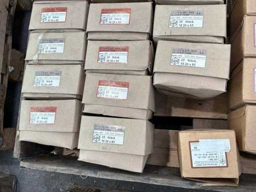 19x pudełka z śrubami M20 i nakrętką z 25 częściami