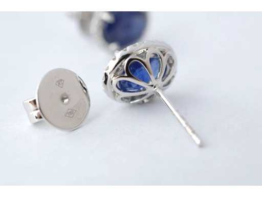 Kolczyki z białego złota z diamentami i szafirem
