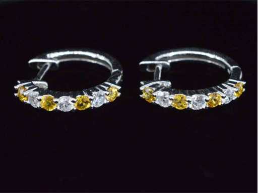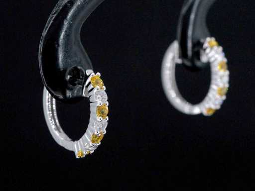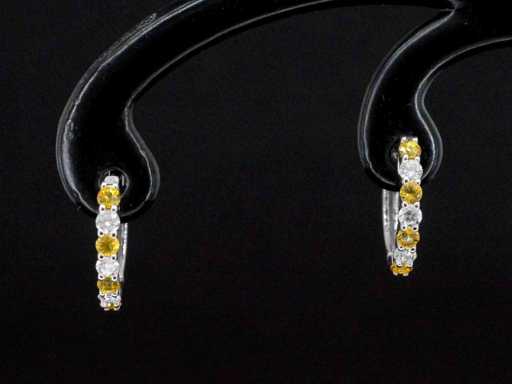 kolczyki z białego złota z pomarańczowymi szafirami i diamentami
