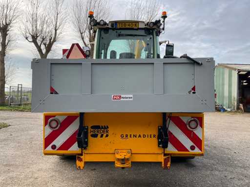 Prędkość PTO 540/540E/1000; zawieszona oś przednia; kabina zawieszona; klimatyzację; czujnik obciążenia; hydrauliczne ogniwo górne; wyposażona w ramię kosiące "Shepherd"; typ Grenadier 512LSH; długość bomu około 7,5 metra; Jednostka hydrauliczna, pod paczką holowniczą,