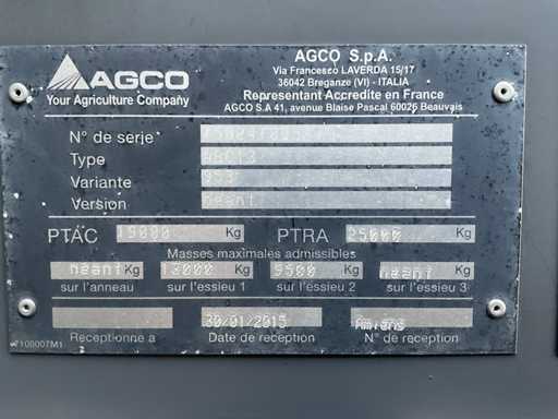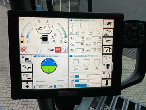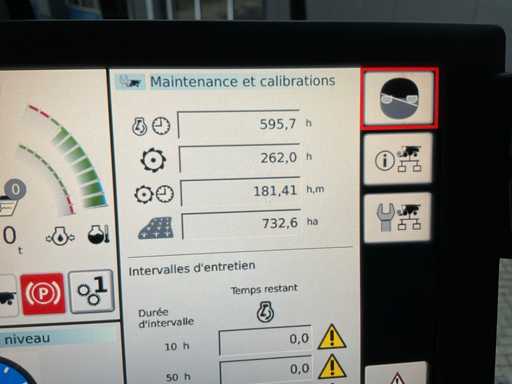 262 godziny młócenia/732 hektary młocenia; etap jest demontowany ze względu na szerokość transportu, przygotowanie GPS, regulację kąta pochylenia kombajnu w stosunku do osi, pochylenie kolektora, kamery, sekacza słomki Rekord 13904, automatycznego smarowania, rejestracji francuskiej