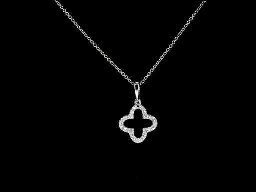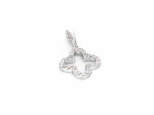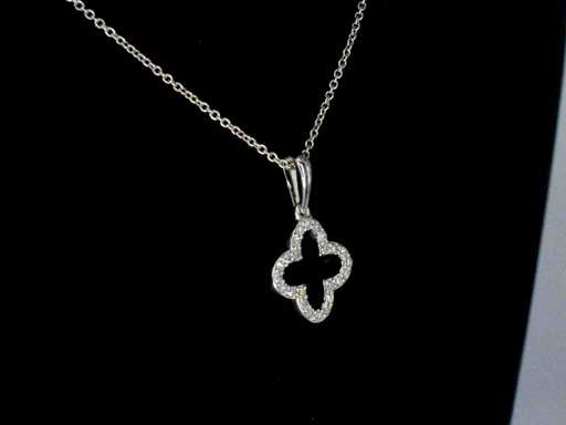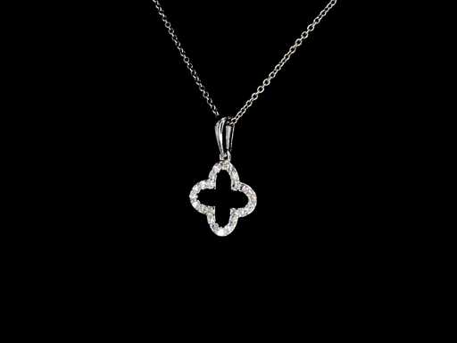 : wisiorek z białego złota w kształcie koniczyny czterokształtu z diamentami