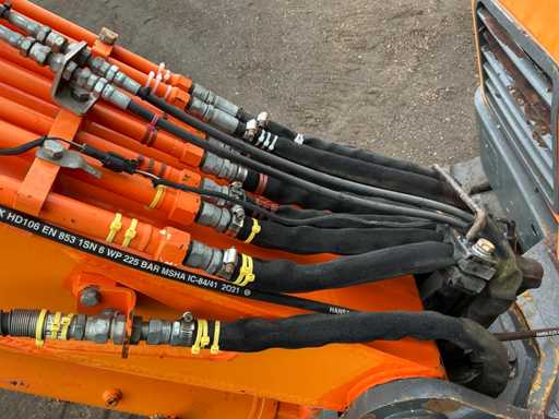 Wyposażony w: hydrauliczny szybkozłącznik (CW10), klimatyzację, radio, certyfikat CE, funkcję sortowania młotkiem, przesuwaną łopatkę