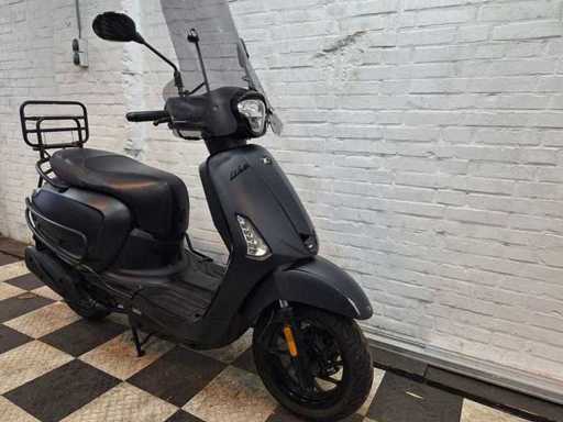 Dostępne 2 klucze do skutera. Akcesoria obejmują wysoką szybę, zestaw uchwytów oraz bagażnik na klapę bagażnika.