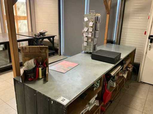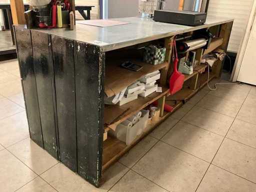 Wyposażony w drewniano-wiklinową konstrukcję oraz różne akcesoria w i na blacie