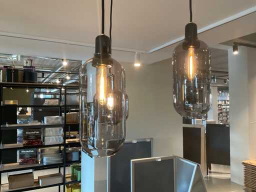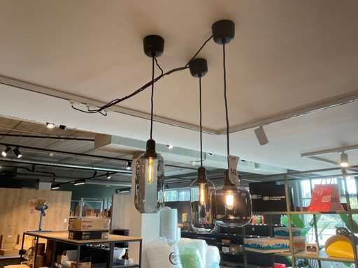 Lampa wisząca z 3 szklanymi kloszami, w tym zaślepkami sufitowymi i połączeniem w szynach, z wyłączeniem szyny.