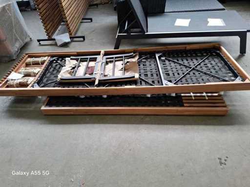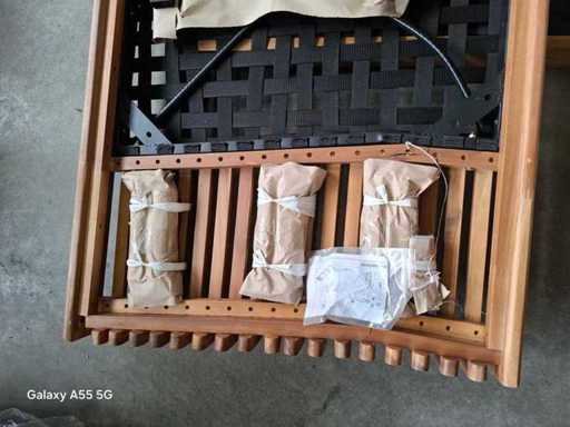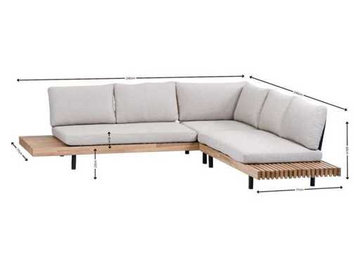 Ten przestronny drewniany zestaw wypoczynkowy jest idealny na relaksujące chwile z rodziną i przyjaciółmi. Rama, wykonana w luksusowym tekowym stylu, emanuje elegancją i stanowi piękny dodatek do każdego ogrodu lub tarasu. Zestaw składa się z dwóch części: lewej części sofy i prawej części sofy. Możesz samodzielnie łączyć te elementy ze sobą, na przykład za pomocą owinięć krawatami, tak aby zestaw zawsze pozostawał na miejscu.