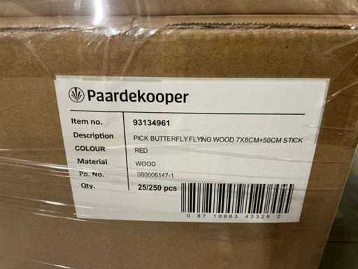 Lot Pick Butterfly latające drewno 7x8cm+50cm na czerwonym patyku (10500x)