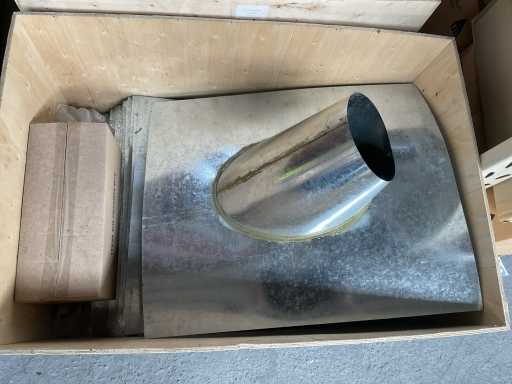 Nieużywane: Skośny przejście dachowe o kątach 45 stopni, podwójnie ściankowy przewód Ø125 mm 70 x 80 cm Rozmiar do : 175 cm Grubość materiału: 0,6 mm