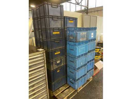 Różne rozmiary pojemników, w tym wymiary około 40x30x26 cm