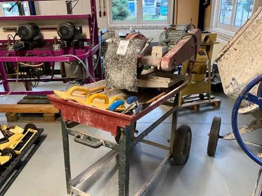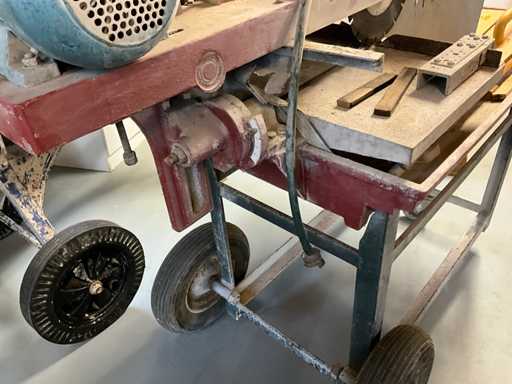 Rozmiar stołu 400x570 mm, brzeszczot Ø 300 mm, wyposażony w ruchomą podstawę, przyłącze wody, w tym burty szynowe