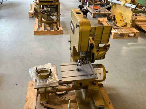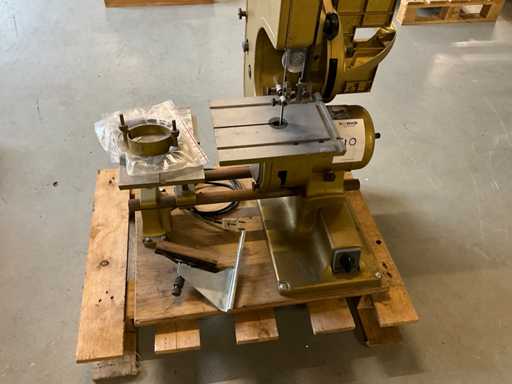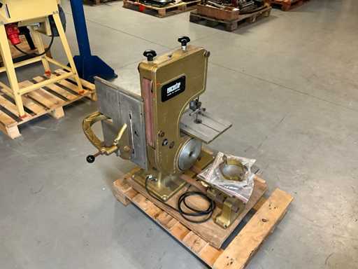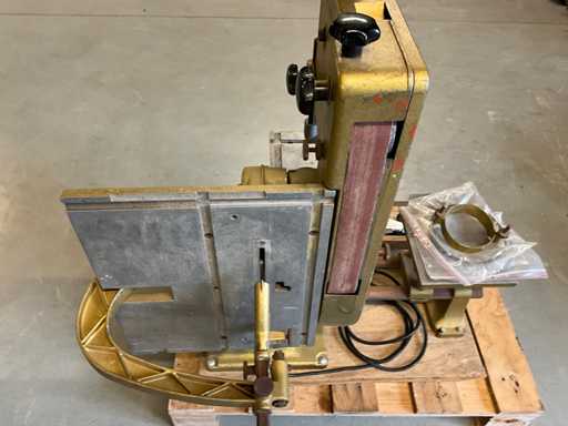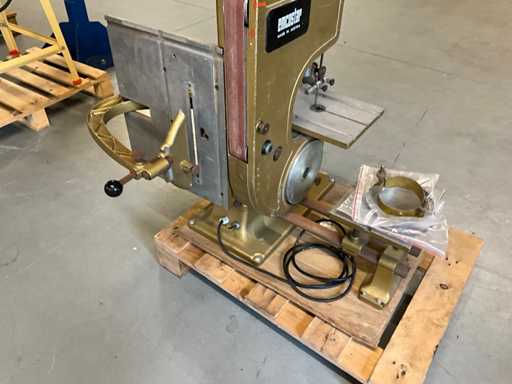 Wyposażony w piłę taśmową, stół piły tarczowej i agregat szlifierski taśmowy oraz tarczę szlifierską,