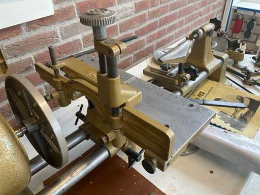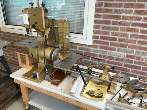 Wyposażony w tokarkę, piłę taśmową, stół piły tarczowej oraz agregat szlifierski taśmowy i tarczę szlifierską, zamontowane na ruchomym stole
