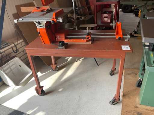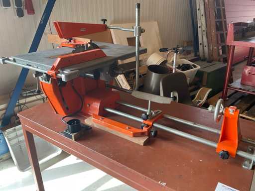 Wyposażony w stół piły tarczowej i tokarkę, zamontowany na mobilnym stole