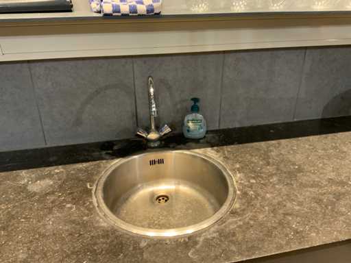 Drewniane meble z blatami z naturalnego kamienia, zlewozmywak z kranem i bojlerem. Zbudowany z 4 części z szafkami i 3 częściami narożnymi.