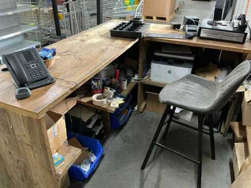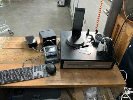 Wyposażony w szufladę bez klucza, bankomat, drukarkę paragonów, HP Laserjet MFP 3102.