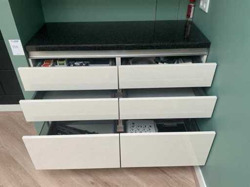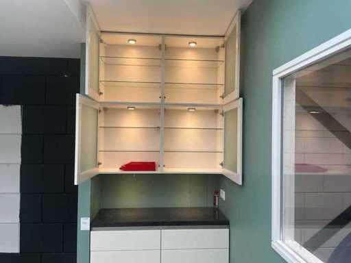 Rozmiar szafki podstawowej: 120x48xH98cm; Rozmiar szafki ściennej: 120x34xH 130cm; Wyposażone w oświetlenie
