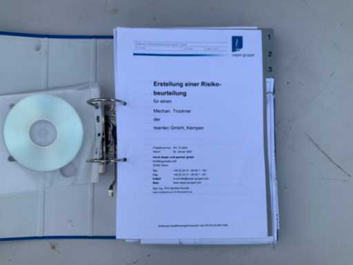 Dostarczony wraz z dołączoną obsługą, o nośności 2000kg/h; moc 90 kW; rotor 1398 obr./min, materiał suszony w stalowej suszarce bębnowej, wyposażony w stalowy przenośnik ślimakowy do podawania; Wysokość wyładunku około 2800 mm, produkt jest usuwany za pomocą dmuchawy transportowej, maszyna służyła w testach jedynie przez około 800-850 godzin pracy, wózek widłowy dostępny do załadunku i przeglądania reantec.de strony internetowej dla innych informacji.