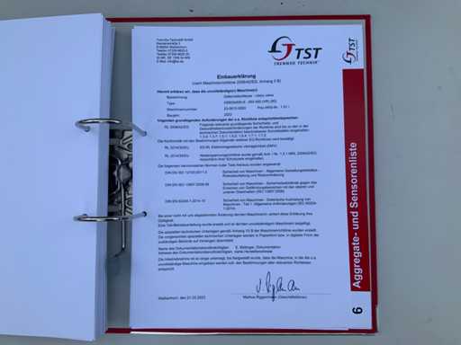 Dostarczony wraz z dołączoną obsługą, o nośności 2000kg/h; moc 90 kW; rotor 1398 obr./min, materiał suszony w stalowej suszarce bębnowej, wyposażony w stalowy przenośnik ślimakowy do podawania; Wysokość wyładunku około 2800 mm, produkt jest usuwany za pomocą dmuchawy transportowej, maszyna służyła w testach jedynie przez około 800-850 godzin pracy, wózek widłowy dostępny do załadunku i przeglądania reantec.de strony internetowej dla innych informacji.