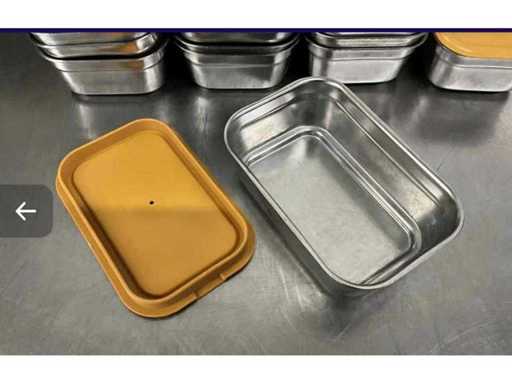 100 stainless steel trays with plastic lids