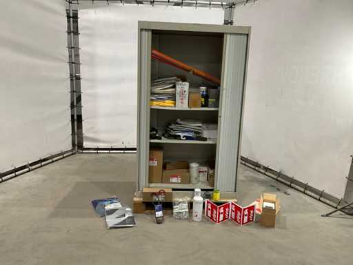 etui zawiera różne ubrania ochronne; 2x poziomica; różne filtry; V Struny