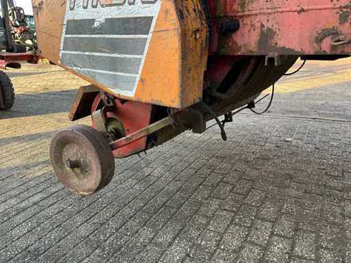 wyposażony w zawór hydrauliczny z siatką, łańcuch podłogowy, podwozie tandemowy, szerokość przetwornika 1550 mm, hydrauliczną regulację dźwigni,