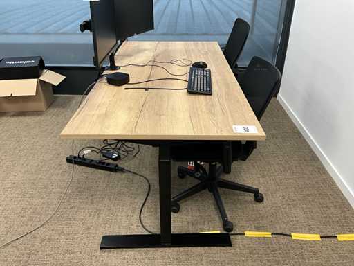 Wyposażony w drewniany dach i metalową ramę; w tym 2x krzesło biurowe; bez monitorów i urządzeń peryferyjnych