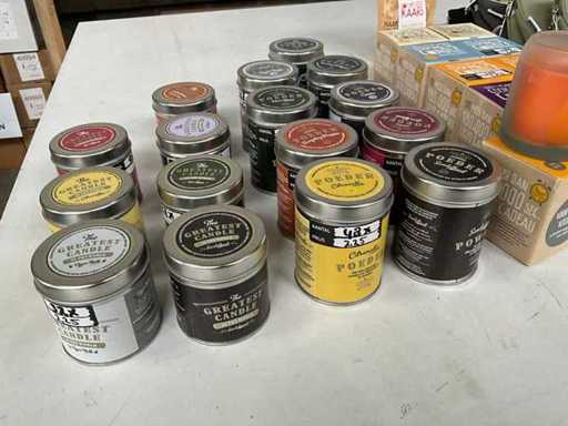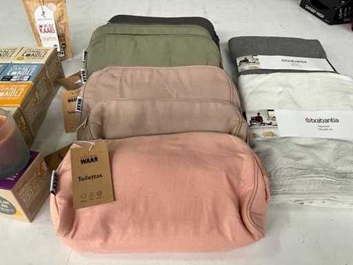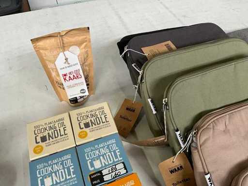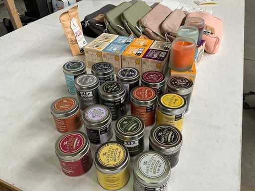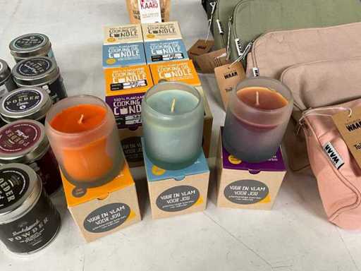 Mieszaj dużo różnych rzeczy ze świecami i torbami toaletowymi