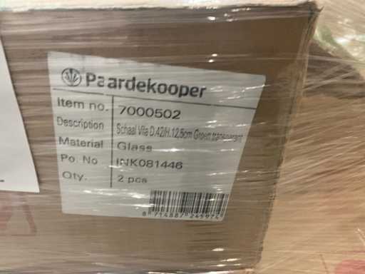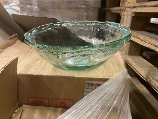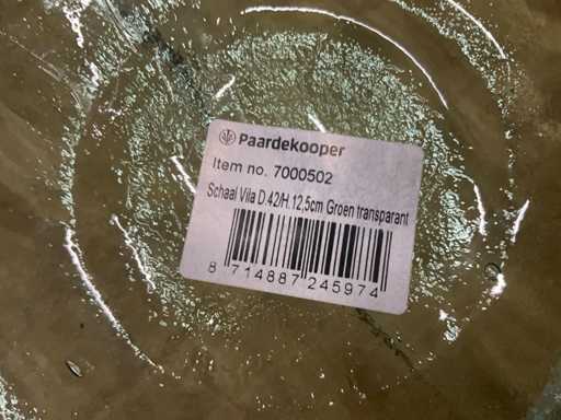 1 paleta z tacą Vila D42/H12 cm i Vila D28x10 cm w kolorze transparentnym zielonym, wraz z paletą.