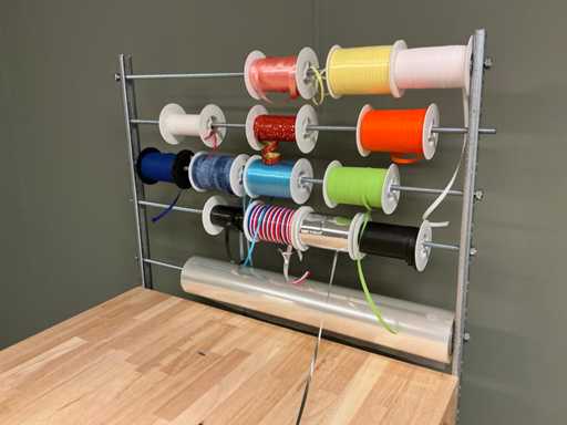 Zawiera uchwyty na rolki Legro, 1 stojak montowany powierzchniowo z różnymi szpulami wstęgowymi. Włącznie z rzeczami przy ścianie, rolkami itd.
