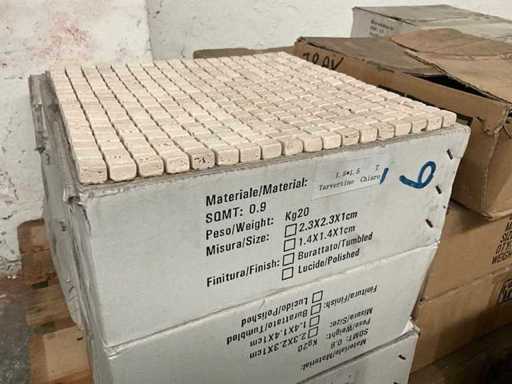 Około 245 płytek, wymiar na kafelek 30x30x1 cm, bloki mozaikowe o wymiarach 14x14 mm na palecie