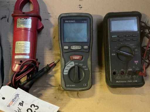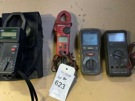 1-kawałkowy multimetr ABB z zaciskiem, typ M5110, 1-kawałkowy multimetr Benninga typu LR06, 1-kawałkowy multimetr pan, typ 2810 oraz 1-kawałkowy multimetr Voltcraft