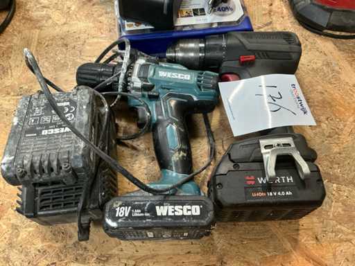 Z tego 1x szlifierka Dremel, 1x bezprzewodowa śruba/wiertarka Wesco oraz 1x bezprzewodowa śruba/wiertarka Wurth (bez ładowarki)