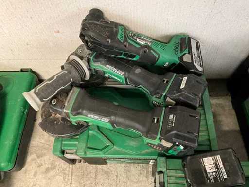 Składa się z 5 szlifierek kątowych i 2 narzędzi wielofunkcyjnych; wyposażony w łącznie 3 walizki; 7 baterii i 1 ładowarka baterii