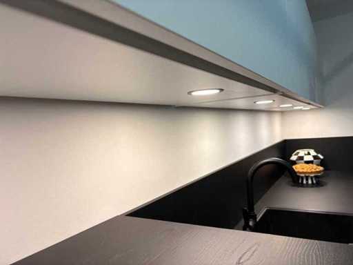 Wymiary pozostawione wyniosły około 354x60x124 cm; wymiary prawej części około 277x60x93 cm; Kuchnia musi zostać rozebrana na miejscu na pierwszym piętrze