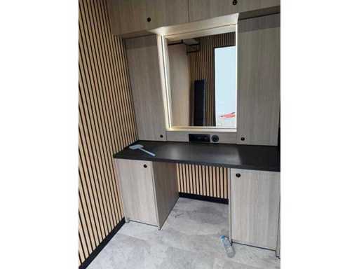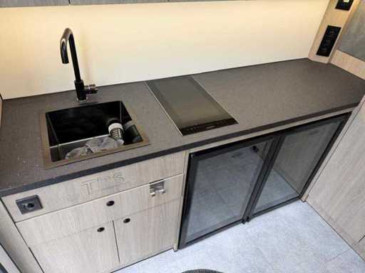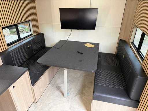 W pełni wyposażony jako wagon turystyczny ze wszystkimi udogodnieniami, takimi jak sanitaty, infrastruktura kuchenna, szafy i pomieszczenia magazynowe, system chłodzenia-ogrzewania, różne ekrany sterujące, schody i markizy oraz inne