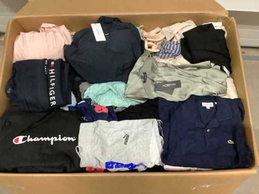 Ta część składa się z odzieży od projektantów ze sklepów oraz zwrotów klientów z (dużych) detalistów. Ubrania nie zostały indywidualnie sprawdzone i są oferowane w takim stanie, w jakim jest. Przedmioty mogą wykazywać oznaki użytkowania lub mieć wady, w tym między innymi: Plamy, zużycie, drobne uszkodzenia, brakujące etykiety, brakujące guziki lub zamki, przebarwienia, nietypowe wymiary, zapach (np. dym/perfumy/magazyn) lub wcześniejsze oznaki prania lub zużycia. Oryginalne opakowania i etykiety cenowe mogą być zaginione. Skład, rozmiary, liczby i marki są wymowne, ale nie gwarantowane. Pokazane zdjęcia dają ogólne wrażenie o placu; Nie można z tego wyprowadzić żadnych praw. Zdecydowanie zalecamy wykorzystanie dnia oglądania na samodzielną ocenę stanu, jakości i możliwości sprzedaży. Licytując się, akceptujesz ryzyko, że (część) ubrań nie nadaje się do odsprzedaży bez dodatkowych działań, takich jak czyszczenie, naprawa czy sortowanie. Licytując na tę działkę, przyczyniasz się do bardziej zrównoważonej sieci detalicznej. Dajesz powrotnym przepływom drugą szansę i pomagasz ograniczyć marnotrawstwo ubrań oraz surowców.