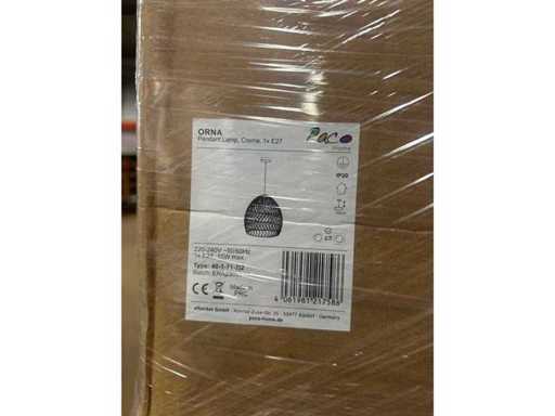 Paleta z oświetleniem projektowym od Paco Home, bezpośrednio z centrum realizacji zamówień. Pudełka są nieotwarte i nie posegregowane. Treść może obejmować nowe produkty, artykuły demonstracyjne lub przedmioty z uszkodzeniami lub brakującymi częściami. Czasem to tylko uszkodzone opakowanie, ale może się też zdarzyć, że sam produkt jest uszkodzony lub niekompletny.