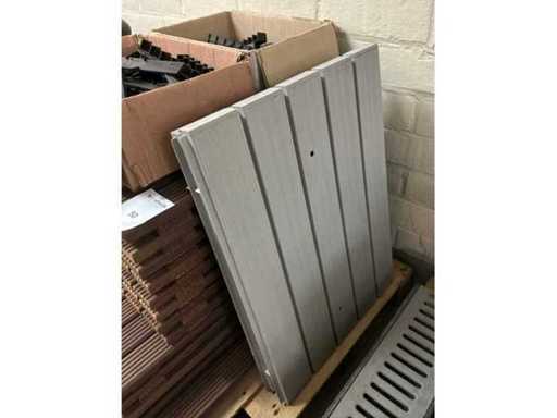 Drewniane płytki 1x 95 x 50 cm, 3x 83 x 50 cm, 8x 68 x 50 cm + 2x plastikowe płytki 68 x 50 cm