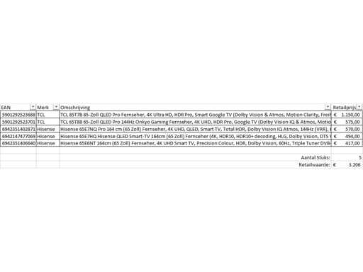 Dotyczy to partii odbioru telewizorów z dużego sklepu internetowego. Impreza składa się z telewizorów o różnych rozmiarach. Liczba pionków: . Wartość detaliczna: Telewizory nie działają i można je wykorzystać do części zaczepienia. Przyjdź w dniu oglądania, aby dobrze poznać powód powrotu. Zobacz zdjęcia, aby poznać listę treści.