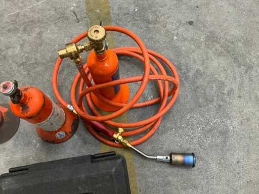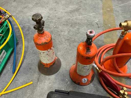 Z różnymi butlami gazowymi; częściowo wypełnione