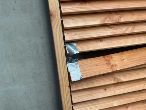 Regulowany panel lamelowy Douglas 223x120 cm. Uwaga: 1xLamel wymaga naprawy, szczegóły na zdjęciach.