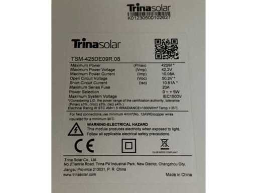 W tym 32x Trinasolar TSM-425DE09R.08 oraz 3x LONGI LR5-54HPB-400M, Zawiera 8 starych paneli słonecznych, które mogą być wadliwe.
