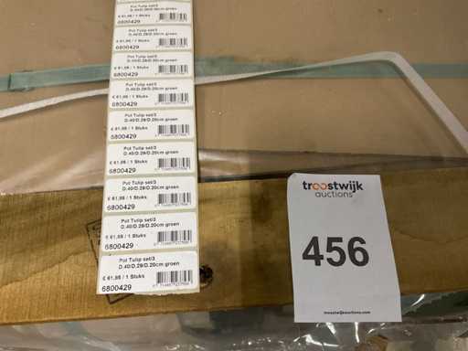 1 paleta, ok. 12 zestawów po 3 doniczki modelowe tulipany, średnica 20 - 29 - 40 cm, w tym paleta