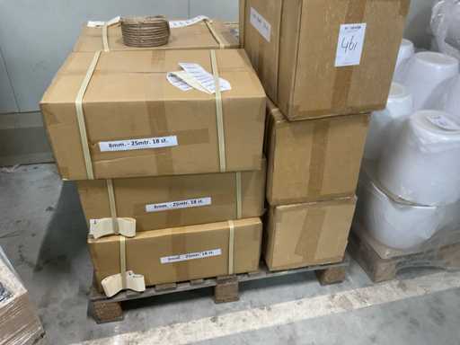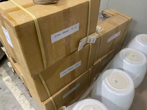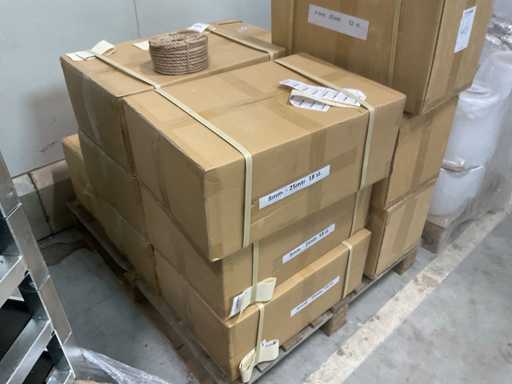 3 palety, w tym 2 z glinianymi doniczkami i 1 z rolkami naturalnego sznurka jutowego, w tym palety