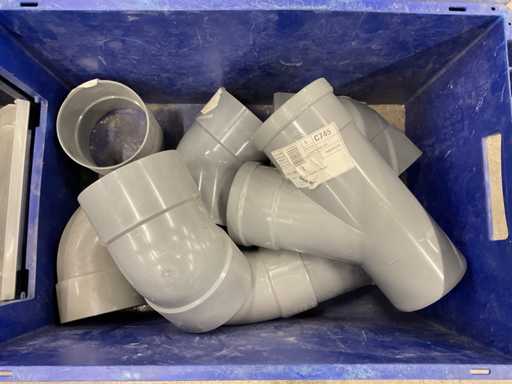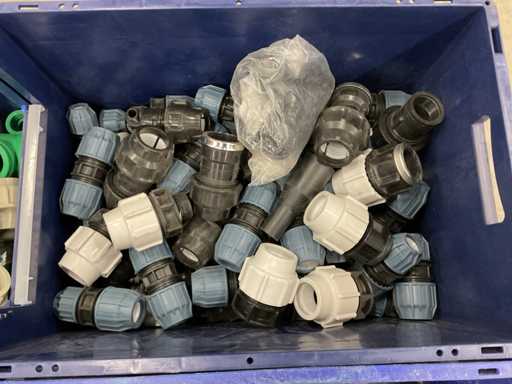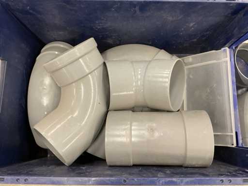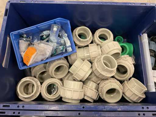 - o.a. PVC hulpstukken, snelkoppelingen, etc., incl. kunststof kratten.